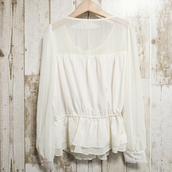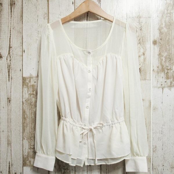 ブラウス シフォン 長袖 ウエスト絞り レディース きれいめ カットソー アイボリー オフィス デート 送料無料
