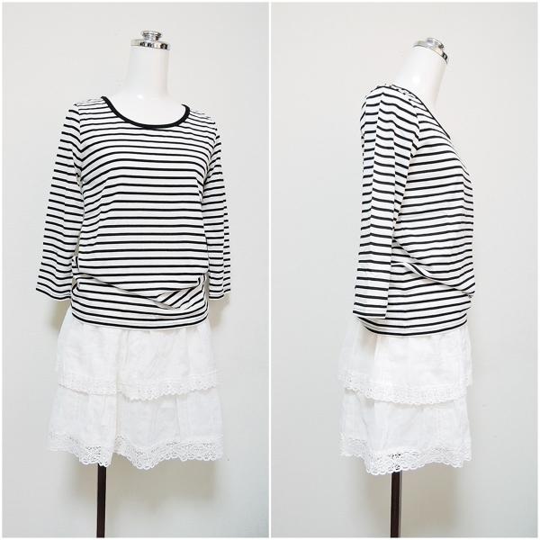 カジュアルトップス シャツ ニット 7分袖カットソー ブラック&ホワイト