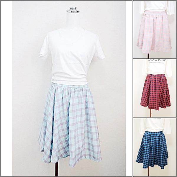 チェック フレアスカート ウエストゴム 裏地付き*クリックポスト可*