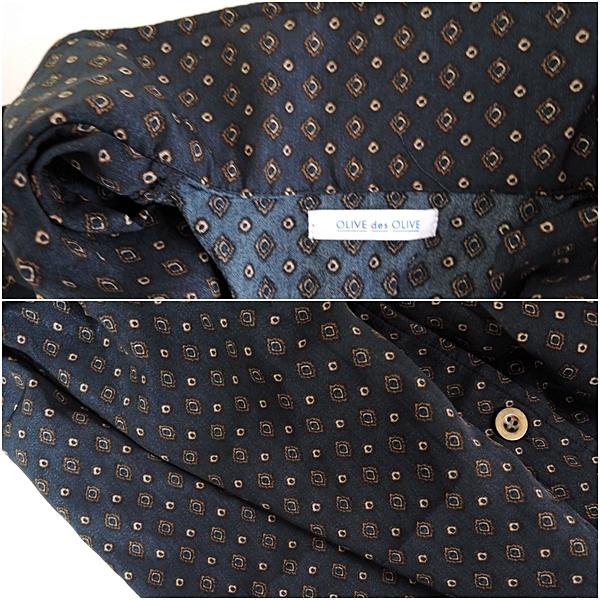 ワンピース ロング丈ワンピース OLIVE des OLIVE マキシ― レトロ柄 ネイビー キャメル Vネック 体型カバー ロング丈 送料無料