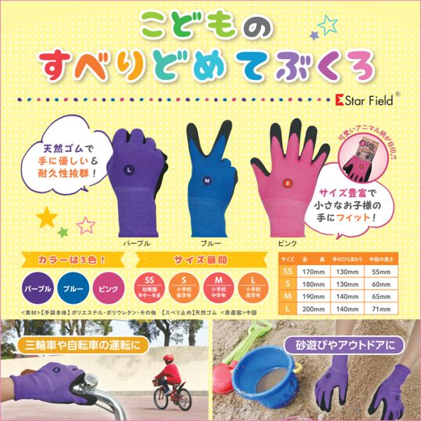 子供 すべり止め手袋 キッズ 男の子 女の子 天然ゴム ブルー ピンク パープル SS S M L 作業 軍手 手袋 背抜き手袋 こどものすべりどめてぶくろ 手袋 スポーツ