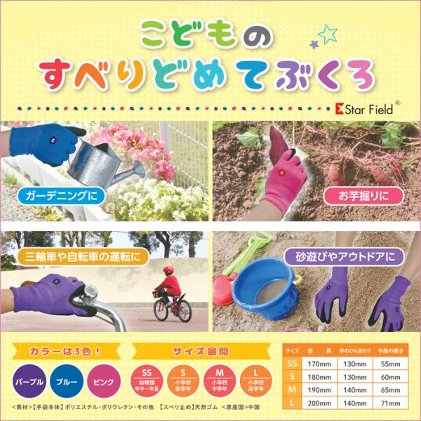関連キーワード:子供 すべり止め こどものすべりどめてぶくろ 天然ゴム 手袋 キッズ 女の子 男の子 背抜き手袋 軍手 ブルー ピンク パープル SS S M L 芋掘り キャンプ ガーデニング
