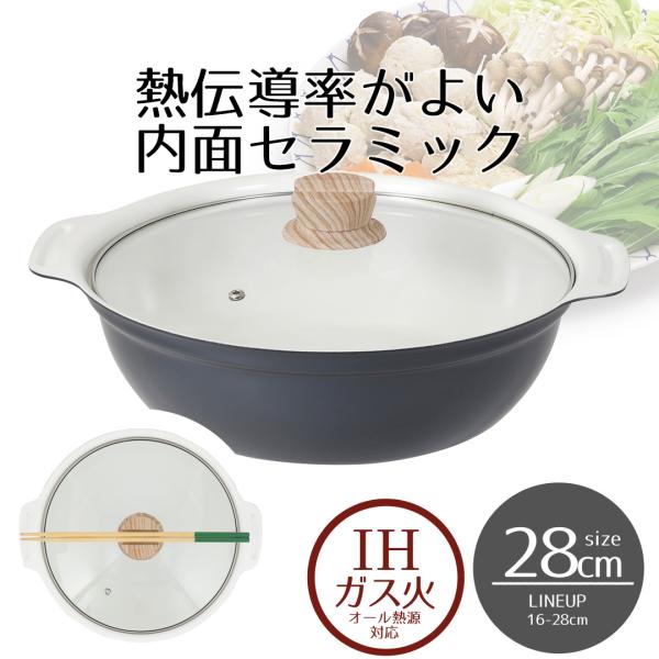 爆買 卓上鍋 セラミック IH ガス火 28cm ガラス蓋付 ビストロ・セラミック NQ-0415 ベストコ | 卓上 鍋 なべ ガラス蓋付き IH対応 ガス火 直火 ih