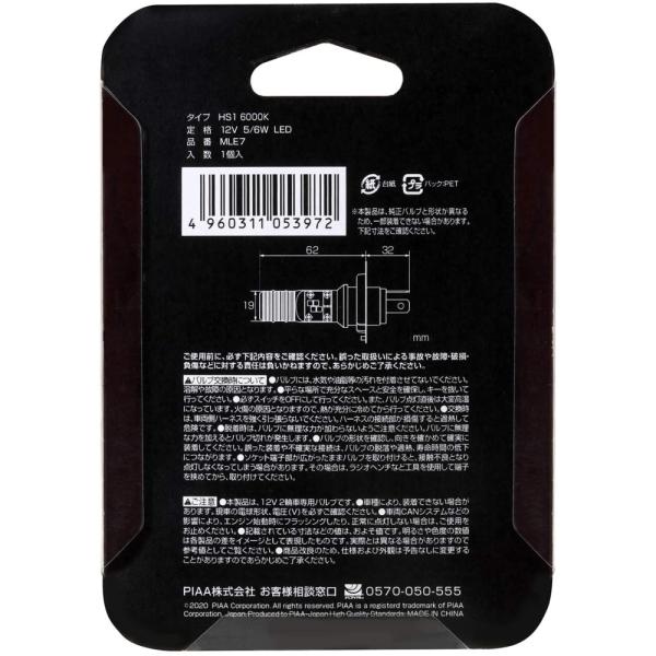 【在庫あり 即納】PIAA バイク用 DUALBEAM LEDヘッドライトバルブ 6000K MLE7 12V 5/6W HS1相当
