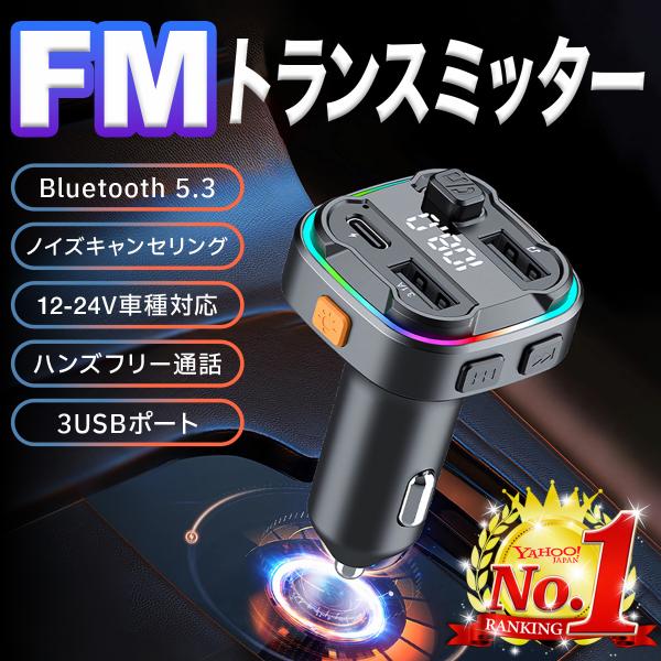 FMトランスミッター bluetooth 車 24v iPhone aux 5.3 24v usb マルチペアリング 高音質 シガーソケット 急速充電 ハンズフリー通話 ワイヤレス 12V カー用品