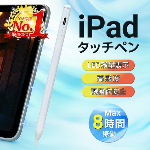 タッチペン ipad専用 高感度 ペンシル ipad用ペン 極細 iphone スタイラスペン iPad タブレット 残量表示 傾き感知 高精度 Type-c充電 誤操作防止 Air mini