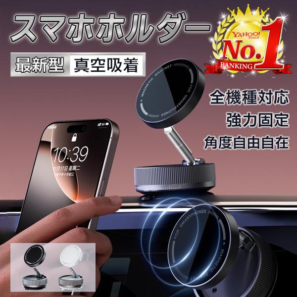 スマホホルダー 車載ホルダー 真空 吸盤 マグネットホルダー 携帯ホルダー スマホスタンド 磁石 マグネット式 magsafe ダッシュボード 折りたたみ 車載 吸着