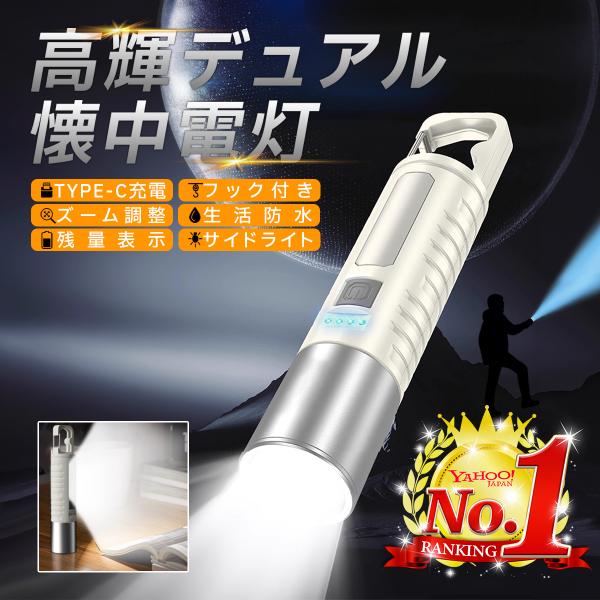 懐中電灯 LED 強力 充電式 小型 ライト USB アウトドア カラビナ付き 最強 照明 防水 防災 電池残量表示 ズーム 停電 キャンプ 作業灯