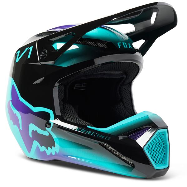 【更にプライスダウン50%OFF】 FOX ’23 ユースV1ヘルメット トキシック/ブラック YM(51-52サイズ)