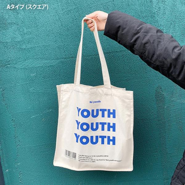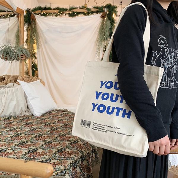 『選べる2タイプ』 キャンバストート YOUTHロゴ レディース バッグ トートバッグ 大きめ a4 肩掛け 手提げ 縦型 縦長 横 軽い かわいい おしゃれ マチ付き サブバッグ エコバッグ 通勤 通学 学生 高校生 大学生 習い事 塾 ライブ コンサート 遠征 現場 参戦 団扇が入る うちわ ジャンボうちわ アイドル 推し活 推し ペンライト ファンクラブ