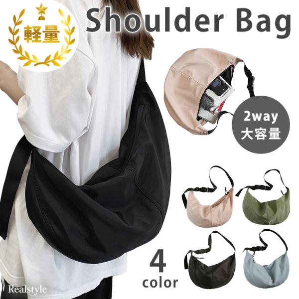 ショルダーバッグ メンズ レディース 大きめ a4 軽い 斜めがけ ナイロン おしゃれ 自転車 ボディ 大容量 スポーティー 撥水 バナナ ワンハンドル 秋冬 春夏 爆買