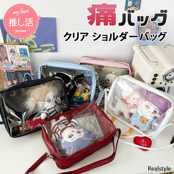 痛バッグ 痛バ ショルダーバッグ メッシュボード付き 缶バッジ アニメ キャラクター クリアバッグ 推し活 軽い 斜めがけ ぬい活 グッズ おしゃれ 横型