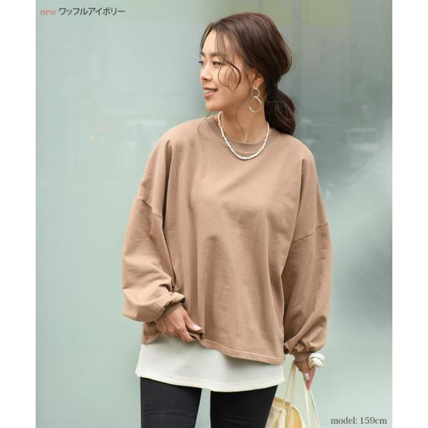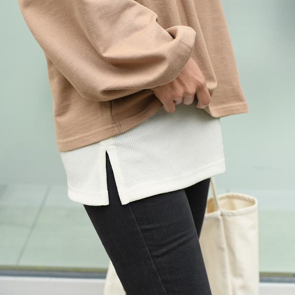 付け裾 レイヤード シャツ つけ裾 フリル コーデ レディース 体型カバー スウェット トップス つけすそ 重ね着風 無地 フレア フェイク インナー スリット入り