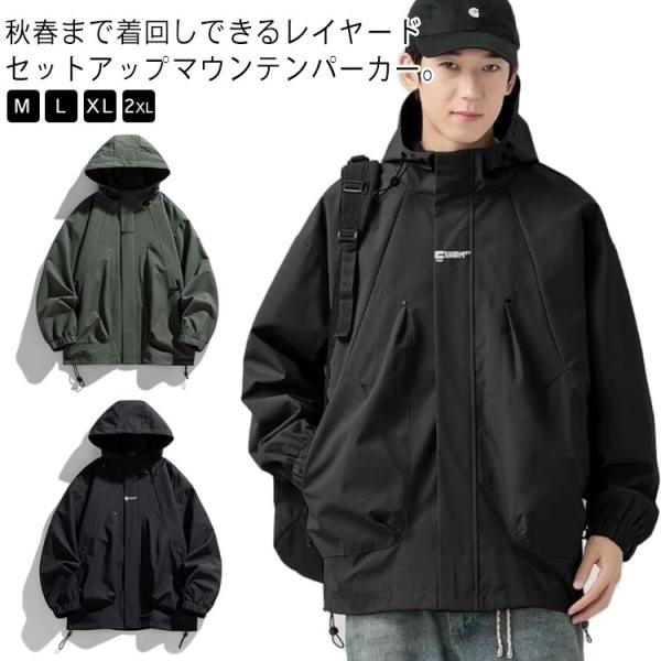 ウィンドブレーカー アウター ライトジャケット マウンテンパーカー 秋服 メンズ 大きいサイズ 無地 撥水 耐汚 防水 防風 薄手 軽量 ブルゾン ウ