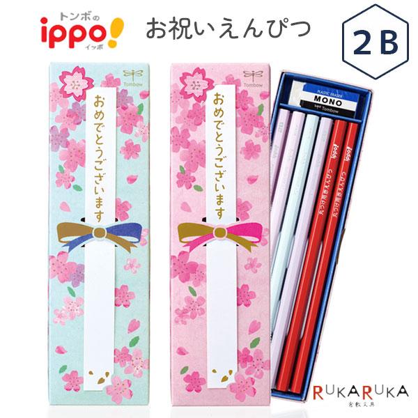 ippo! お祝いえんぴつ [全2色] 2B10本+赤鉛筆2本+消しゴム1コ トンボ鉛筆 36-MP-K*01-2B【2点までネコポス可】[M便 1/2]