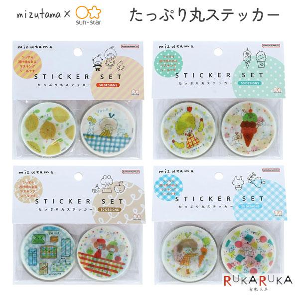 mizutama コラボ 第4弾 たっぷり丸ステッカー [全4色] サンスター文具 13-S88177**【ネコポス可】 [M便 1/8]
