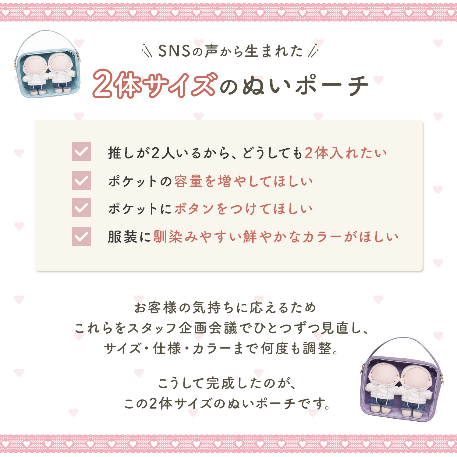 SNSの声から生まれた、2体サイズのぬいポーチ。