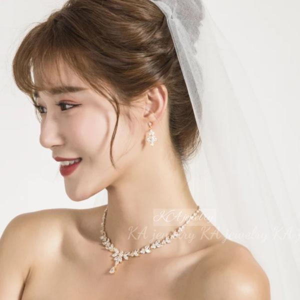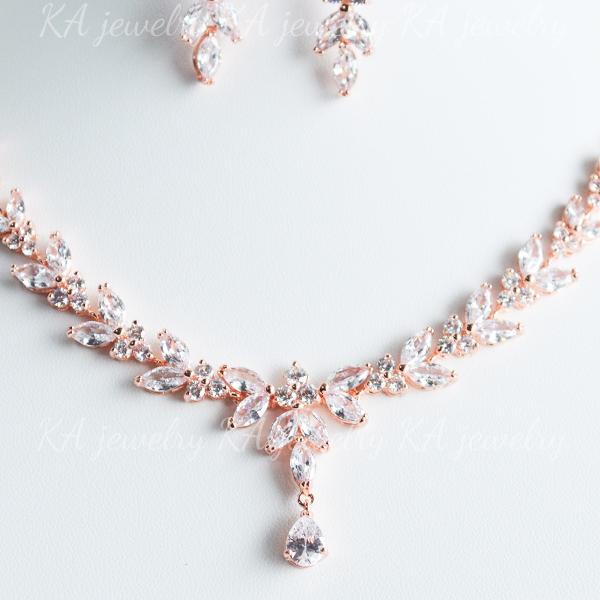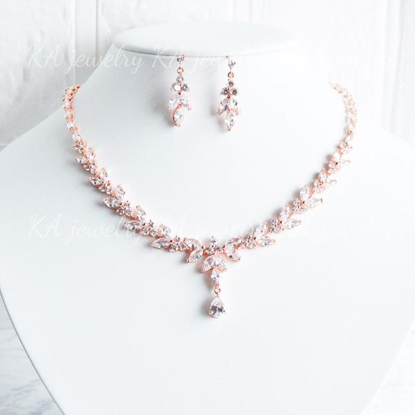 キュービックジルコニア ネックレス イヤリング ピアス 2点セット 結婚式 ローズゴールド ウェディング ブライダル ピンク ジルコン 花嫁