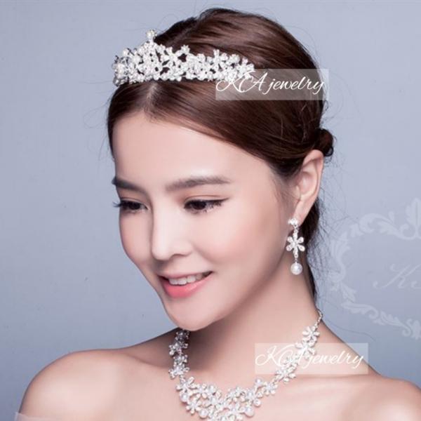 ティアラ ネックレス イヤリング ピアス 3点セット 結婚式 ウエディング 髪飾り ヘッドアクセサリー ブライダル ウェディング 花嫁