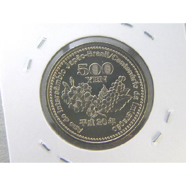 発行日 平成20年6月18日 発行枚数4,800,000枚 直径26.5ミリ 品位 銅720/亜鉛200/ニッケル80 ニッケル黄銅貨 量目7.0g 図案 笠戸丸とブラジル/桜と珈琲の実 「異形斜めギザ」を初めて採用