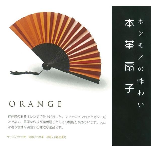 本革扇子 オレンジ(レザーファン 牛本革使用)