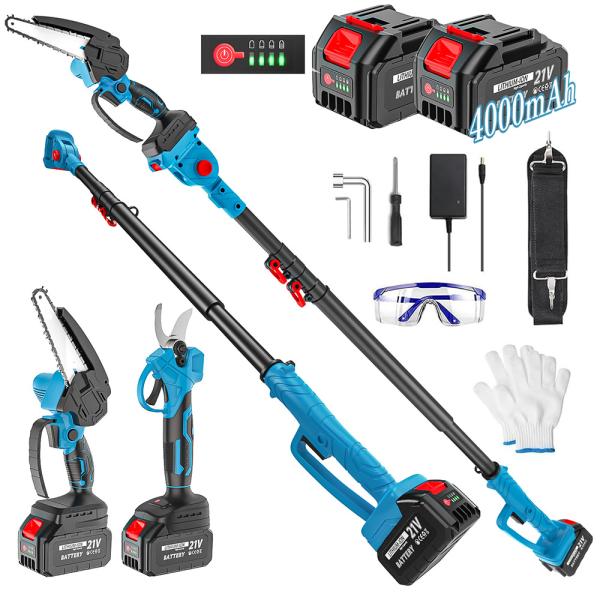 たかえだ 電動 チェーンソー 充電式 6インチ 高枝チェーンソー 電動バサミ 剪定ハサミ セット 4.0Ah大容量バッテリー2個 1台4役