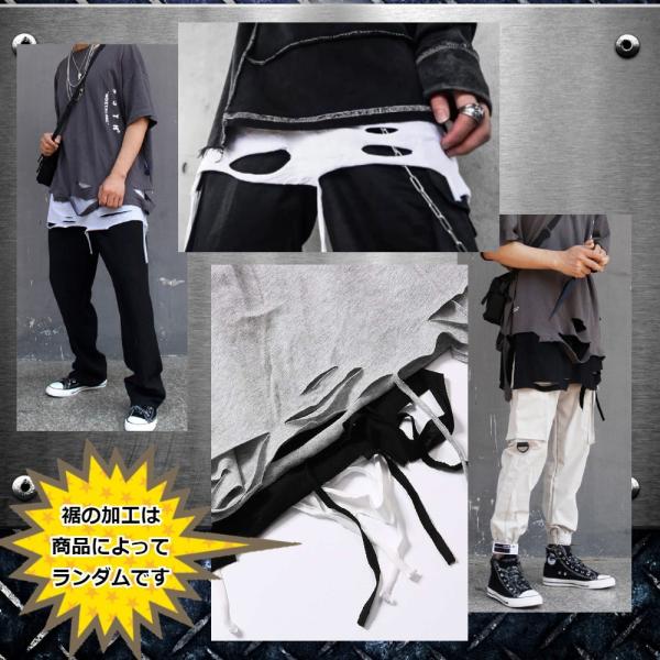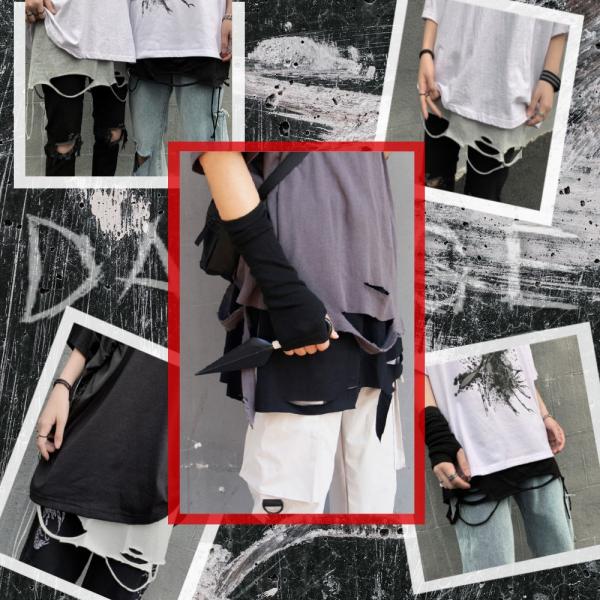 付け裾 クラッシュ加工 ダメージ加工 ロック パンク おしゃれ スラッシュ 男女兼用 モノトーン
