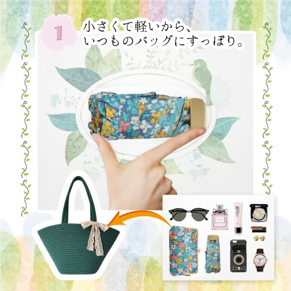 重さは約200gで持ち運びも楽ちん。旅行やおでかけ時など急な雨にもひとつバッグやマイカーにあると安心です。