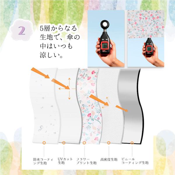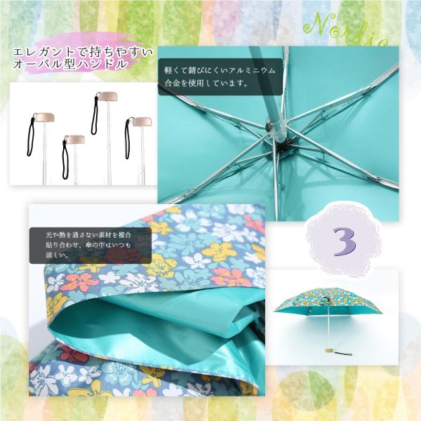 傘布は高密度耐衝撃布で撥水性もよく、断熱、遮光の布を張り合わせてあるので、傘の中はいつも涼しく快適です。