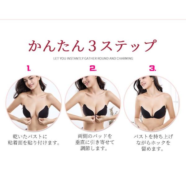 貼り付けてホックをカチッと留めれば、美しいバストラインと谷間のできあがり!
