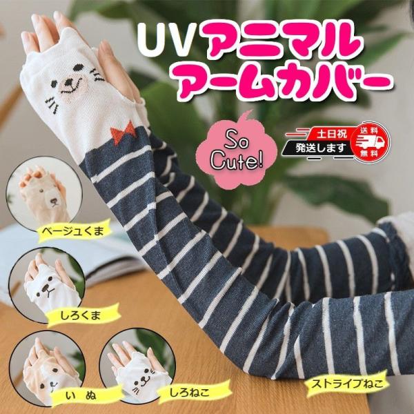アームカバー レディース uvカット おしゃれ 腕カバー 夏 日焼け防止 かわいい アニマルデザイン ロング ゆったり