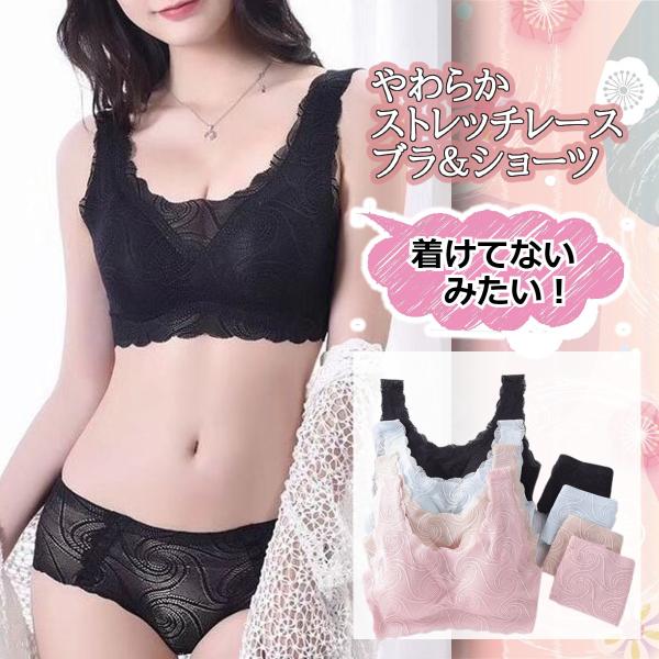 ノンワイヤーブラ ショーツ セット 薄い 軽い 夜用ブラジャー リラックスブラ パッド付き 垂れ防止 可愛い 美胸 在庫限り