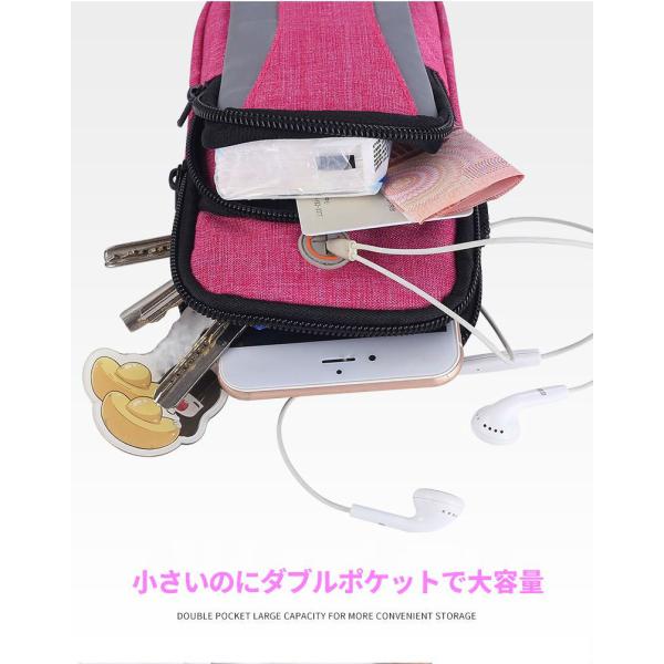 大容量なので、お財布やポシェット代わりにも使え、アームベルトで腕にもつけられます。