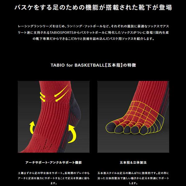<ネコポス発送 送料無料> タビオスポーツ(TABIO SPORTS) バスケットボール用 5本指 クルー丈ソックス 20FW