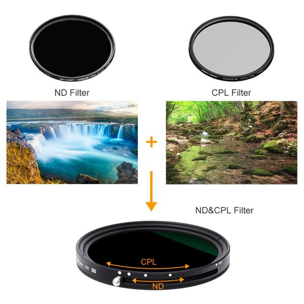 【ネコポス配送・送料無料】K&F Concept バリアブルND+C-PL 多機能フィルター NANO-X 2IN1シリーズ 67mm KF-67CNX2-32 多機能 反射除去 透明感