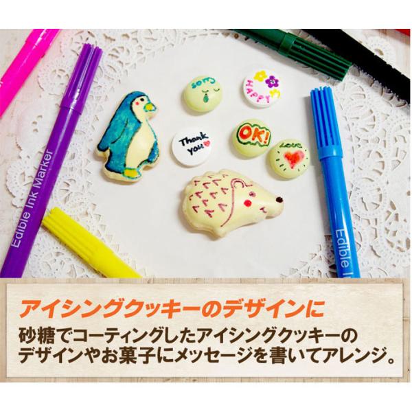 食品に使えるフードペンです。キャラ弁、デコ弁、オブアート、アイシングクッキーやお菓子に絵やメッセージが書けます。原材料:水、D-ソルビトール、プロピレングリコール、着色料(青1,赤3,赤102,黄4,黄5)、安息香酸ナトリウム、ソルビン酸カリウム、グリセリン、カルボキシメチルセルロースナトリウム、ポリソルベート80 原産国:中国 内容量:10色×各1g 賞味期限:出荷日より1年以上