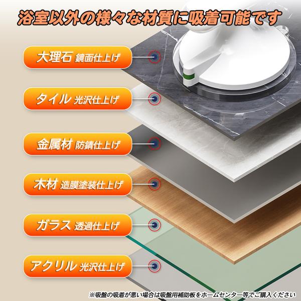 強力吸盤でしっかり固定: 大判の強力吸盤が付いており、お風呂や浴室の壁にしっかり取り付けることができます。
