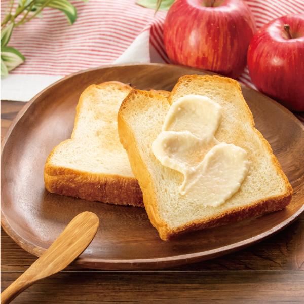 果実のもつ自然な甘さ、酸味、ジューシーさを活かしたりんごの果肉に濃厚なバターを合わせることでコクのあるフルーツバタージャムの完成。