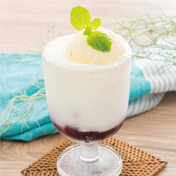 カナダ産の2種類のブルーベリーを使用。ブルーベリーの果肉感と甘さ・風味が美味しいフルーツソース。