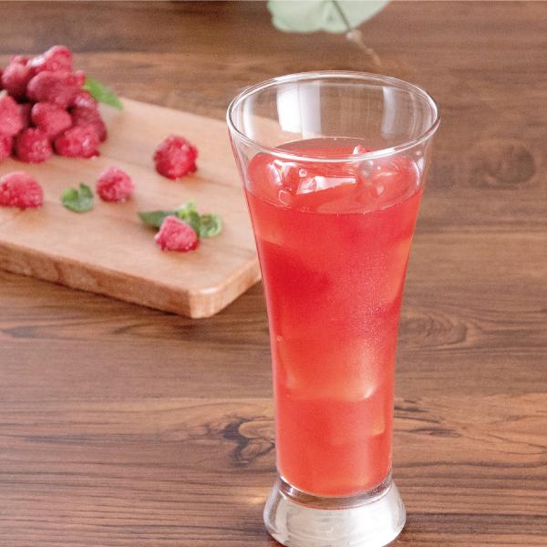 真っ赤に実ったラズベリーを使用。太陽の光をいっぱに浴びて育った果実の甘酸っぱい上品な香りの飲料です。