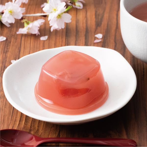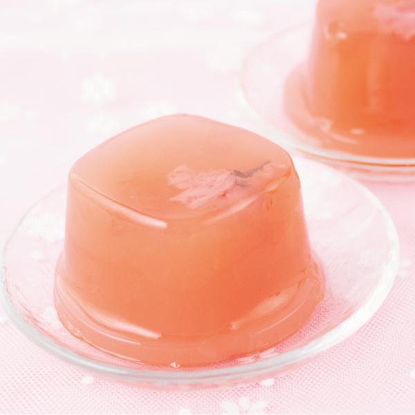 すっきりとした甘さのゼリーに、桜の花を閉じ込めました。国産の八重桜の花びらが入っています。