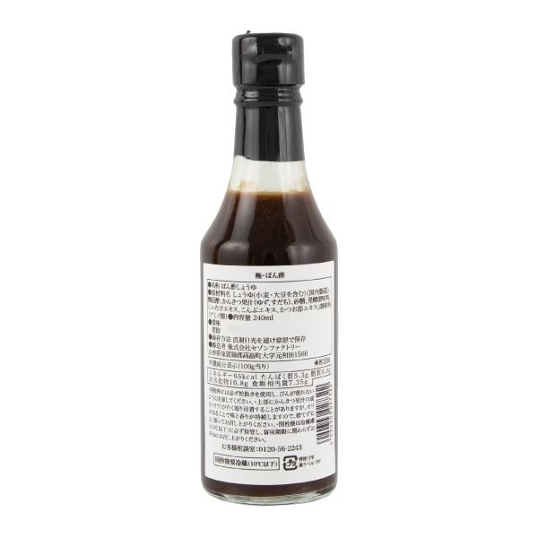 徳島県産すだち果汁と高知県産ゆず果汁を使用。椎茸、昆布、鰹のコクのある旨みが凝縮され、芳しい醤油と爽やかな酸味と香りが広がる柑橘果汁がおいしいポン酢。【注意事項】※開栓には栓抜きが必要です。