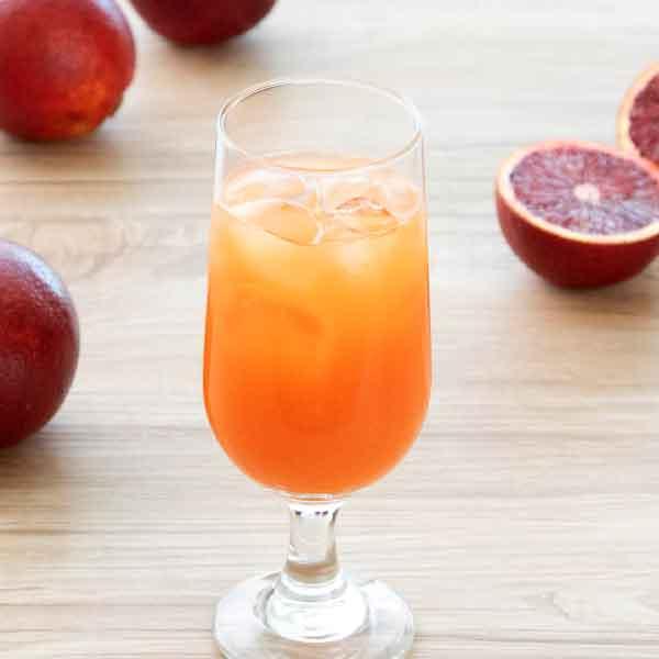 真っ赤な色と濃厚な果実の甘さ、程よい酸味が特徴のジューシーなイタリア産のみのブラッドオレンジ果汁にりんご酢とはちみつをブレンド。