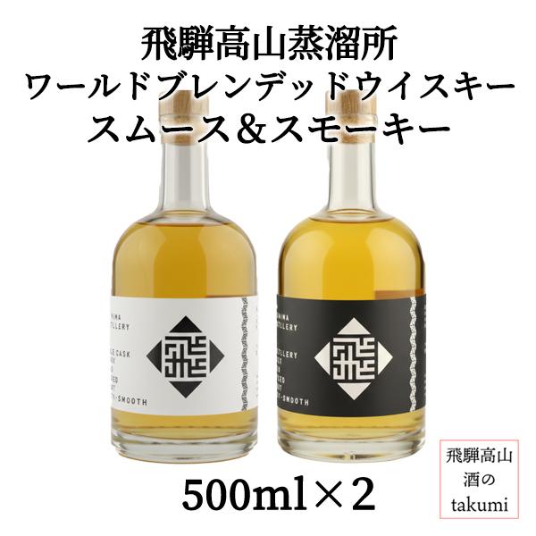 飛騨高山蒸溜所 ワールドブレンデッドウイスキーフルーティ・スムース&モルティ・スモーキー 2本セット 500ml瓶2本 50% 廃校 旧高根小学校 舩坂酒造店
