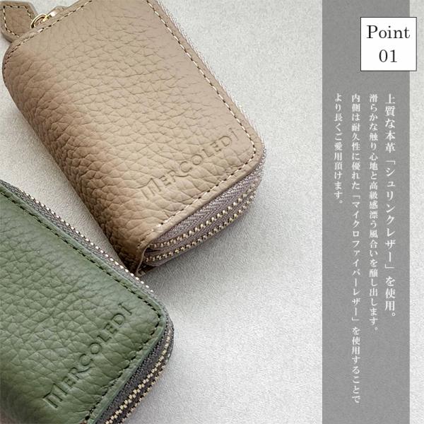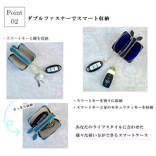 キーケース レディース スマートキーケース おしゃれ くすみ ブランド 本革 スマートキー 2つ メンズ 革 レザー 牛革 車 ファスナー 2個 Dカン 車 鍵 MERCOLEDi