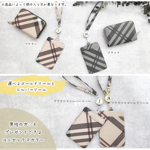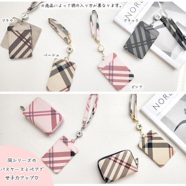 パスケース リール付き レディース 定期入れ ID IC カード 入れ カードホルダー チェック柄 ストラップ カードケース 高校生 レザー 薄型 イニシャル