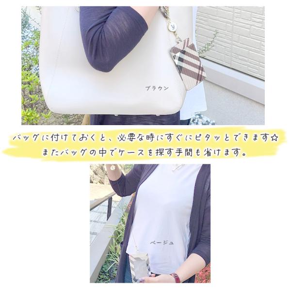 ストラップが取り外し可能でバッグの取っ手などに簡単装着。リール付きなのでバッグに装着したままピタッとタッチできてとても便利です。