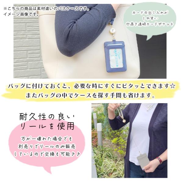 パスケース リール付き レディース 定期入れ ID IC カード 入れ カードホルダー 名入れ ストラップ カードケース 高校生 レザー 薄型 イニシャル シール
