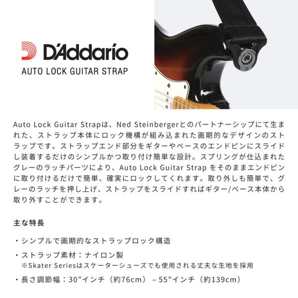 D'Addario ギター・ ベースストラップ Auto Lock Guitar Strap 50BAL〔50BAL00,01,02,03,04,05,13,14〕〔ダダリオ ストラップロック〕〔ゆうパケット対応〕*
