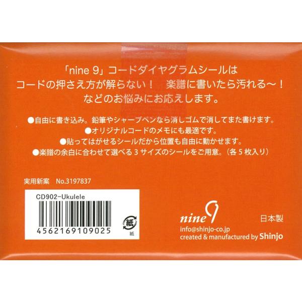 nine9 ウクレレ/ベース用〔4弦楽器用〕コードダイアグラムシール〔2パックセット〕〔CD-902-Ukulele〕〔ゆうパケット対応〕